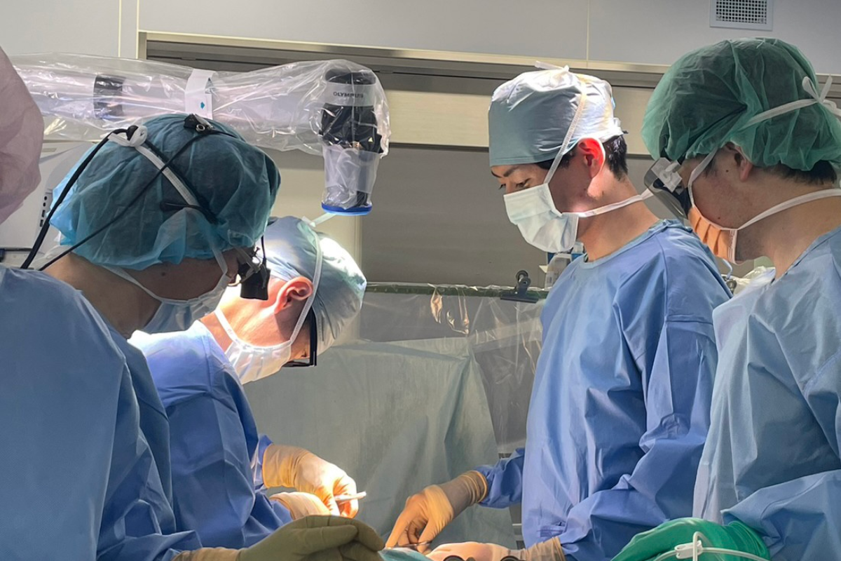 私は昨年度まで,連携施設である聖マリアンナ医科大学で研修していました.手術の方法やアプローチに横浜市大と少し異なる点があって,自分の臨床の幅が広がったと実感しました.これは実際に執刀させていただいている時の写真です.